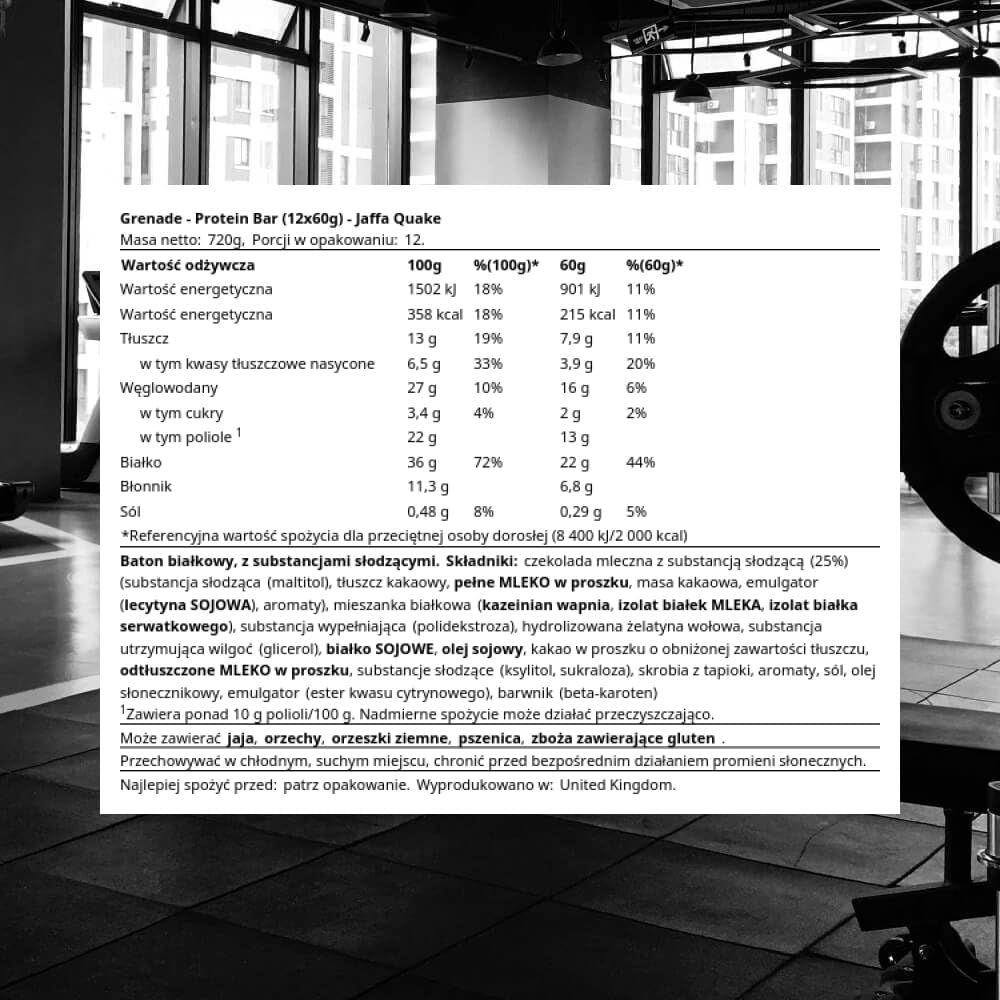 Grenade High Protein, Low Sugar Bar - Jaffa Quake (12x60g)